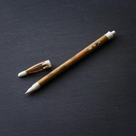 To know moreA fude made by wrapping the core hair with washi paper and then adding the outer hair. At first glance, it may not look much different from a regular fude, but upon closer inspection, you can see that the tip suddenly becomes very thin from the part where the paper is wrapped.
