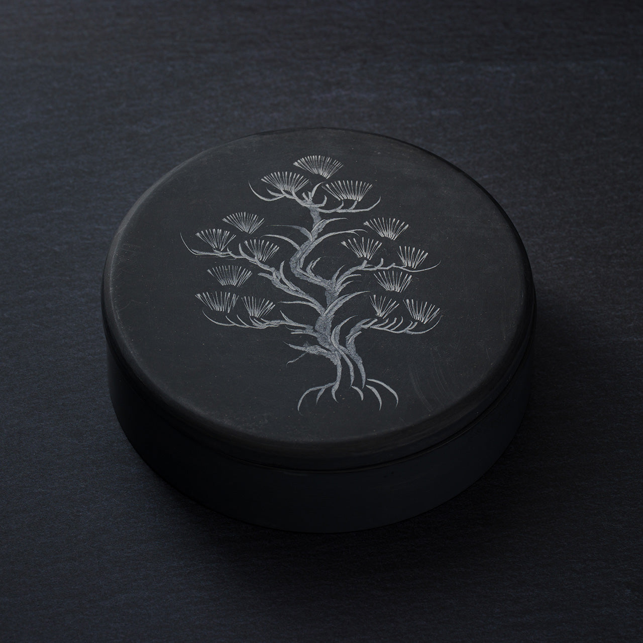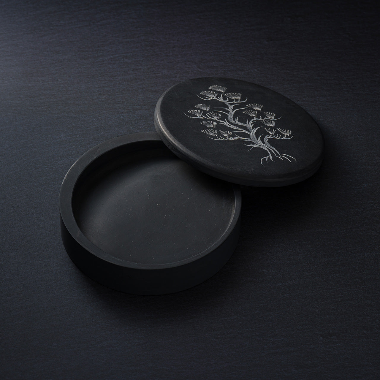 The Ogatsu Suzuri featured here includes a lid with a special carving of a single pine tree. This represents the "Miracle Pine" (Kiseki no Ipponmatsu), the one solitary tree that survived the massive tsunami of March 11, 2011, out of approximately 70,000 pines in the nationally designated scenic spot, "Takata Matsubara.
