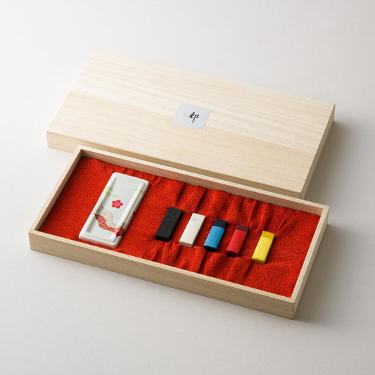 【KISHU】Arita Porcelain suzuri (OMOTE) & SAIEMBOKU, watercolor sumi ink stick